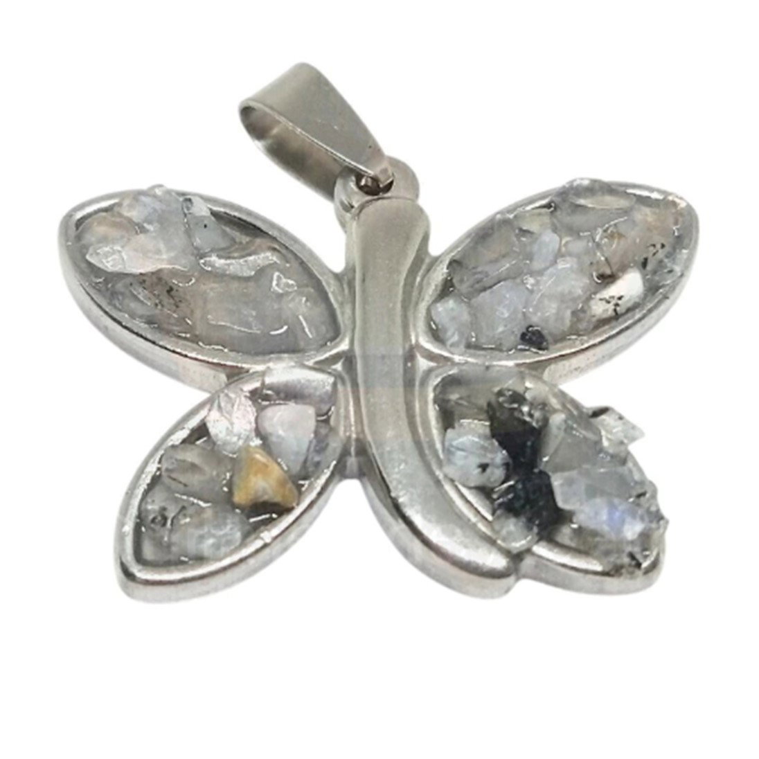 DIJE MARIPOSA CON CUARZO Y TURMALINA - Acero quirúrgico