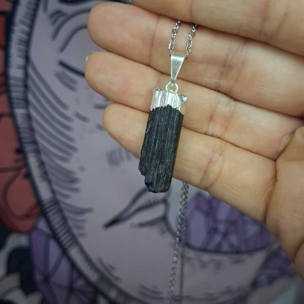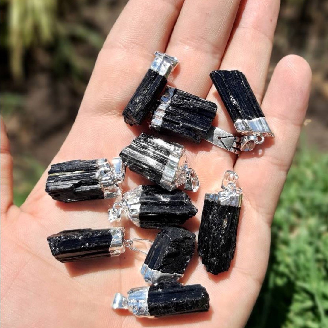 DIJE TURMALINA NEGRA MEDIANA - En bruto con electroplay