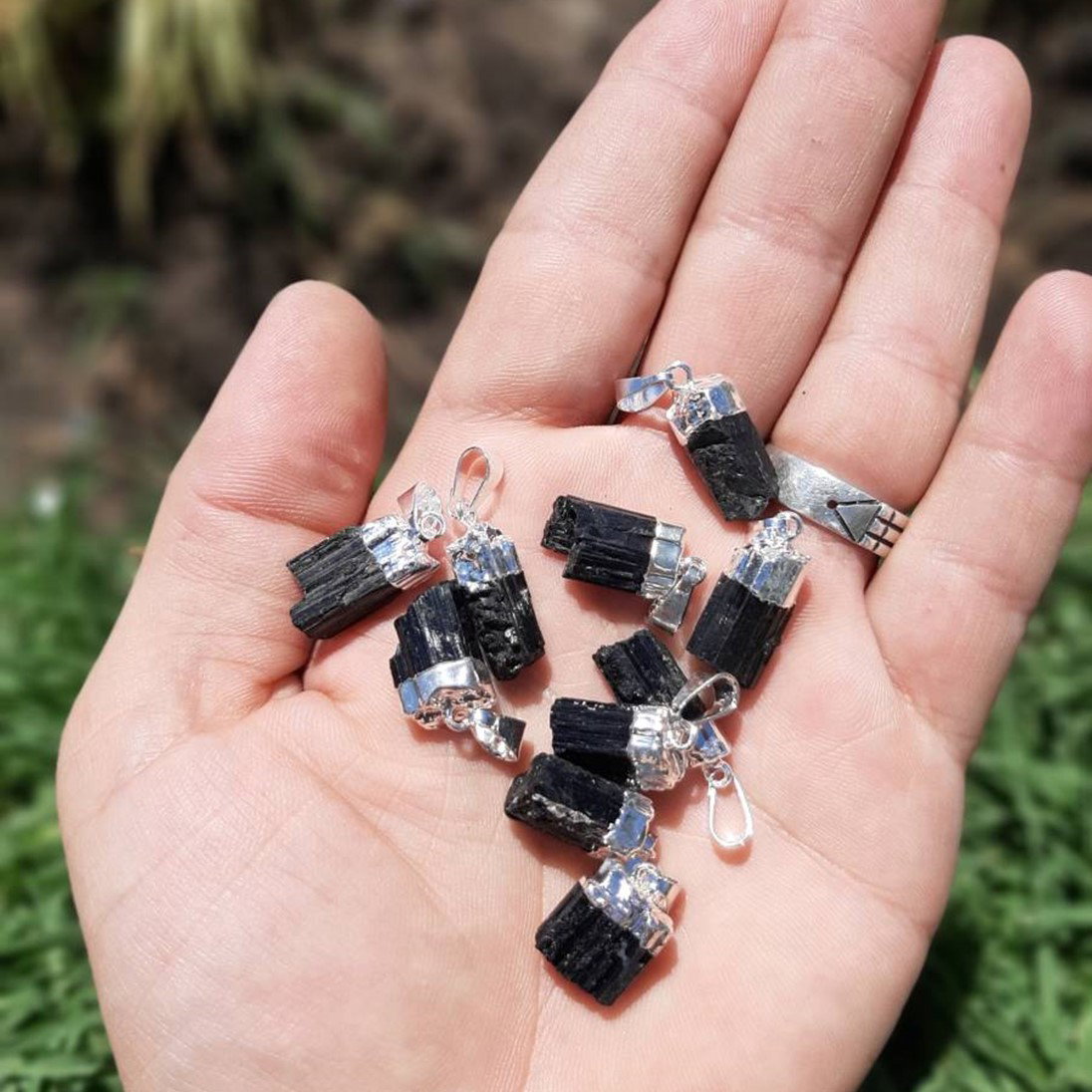 DIJE TURMALINA NEGRA CHICA - En bruto con electroplay