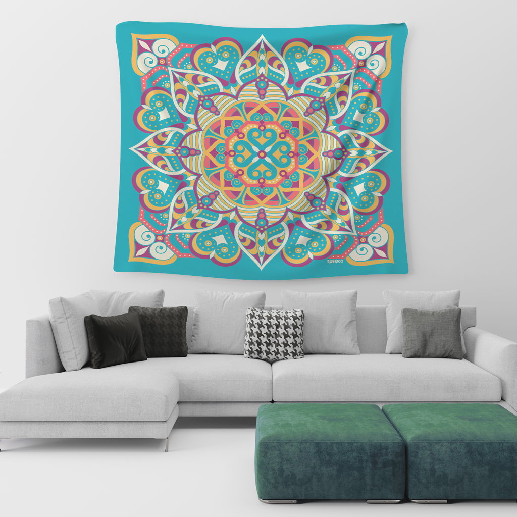 MANTA/LONA MANDALA TURQUESA - Cuadrada 1,40 m x 1,40 m