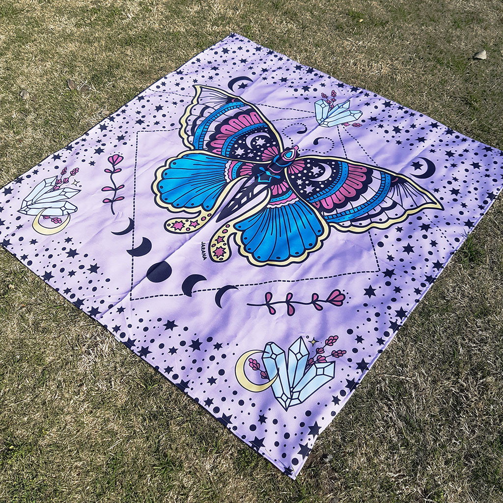 Ideal para hacer yoga, usar como manta de tarot, llevar al parque, la playa o decorar tus espacios.