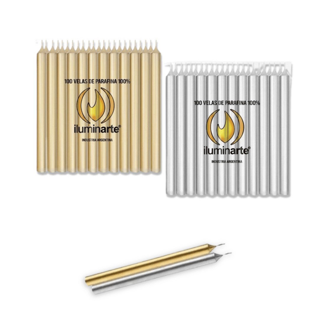 VELAS DORADAS / PLATEADAS LARGAS DE PARAFINA 20 cm - Iluminarte