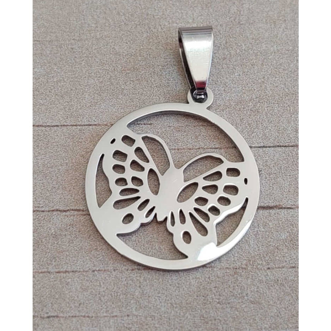 DIJE MARIPOSA CON CIRCULO - Acero quirúrgico