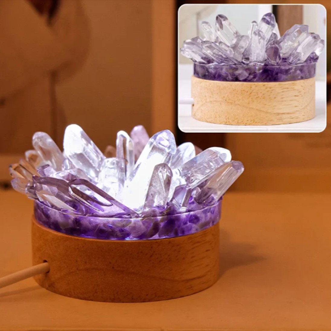 LAMPARA LED DE PUNTAS DE CUARZO CRISTAL Y AMATISTA