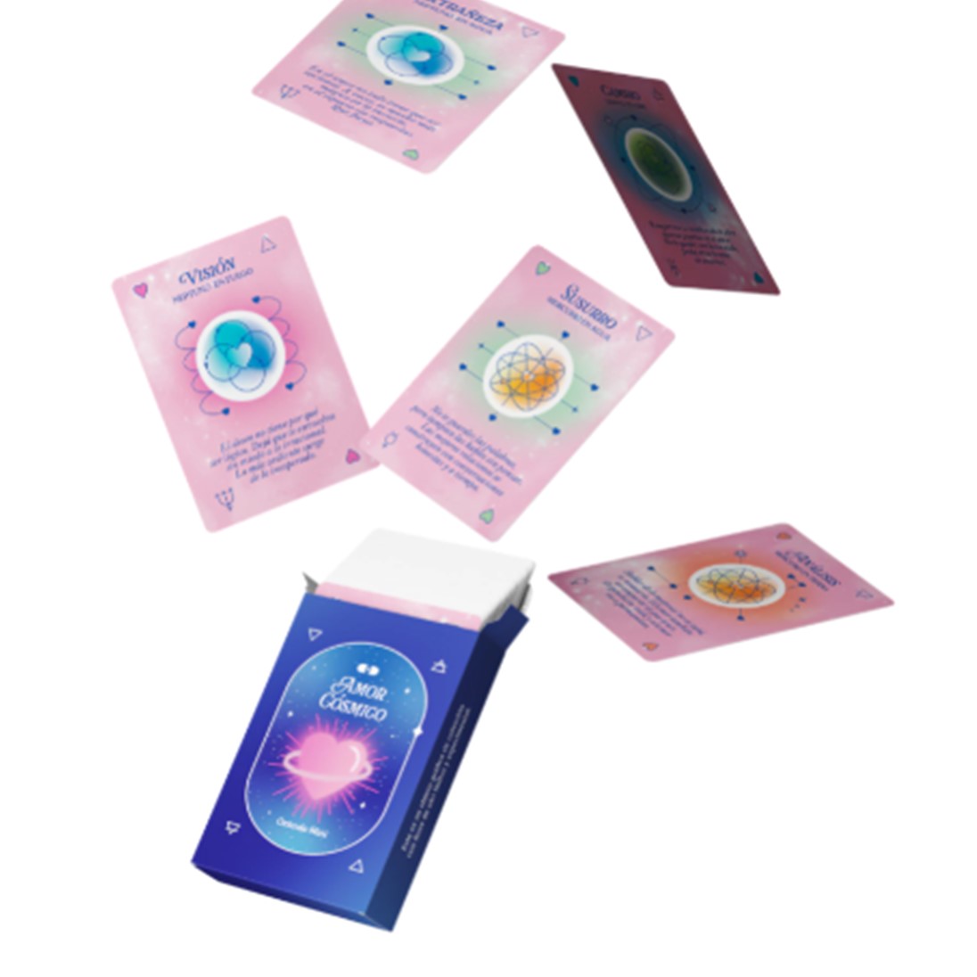 Mini Amor Cósmico no responde: dialoga. Este oráculo propone leer los vínculos como mapas simbólicos donde planetas, emociones y preguntas se cruzan. Compacto pero profundo, está pensado para lecturas íntimas, rituales express y preguntas que nacen en movimiento.