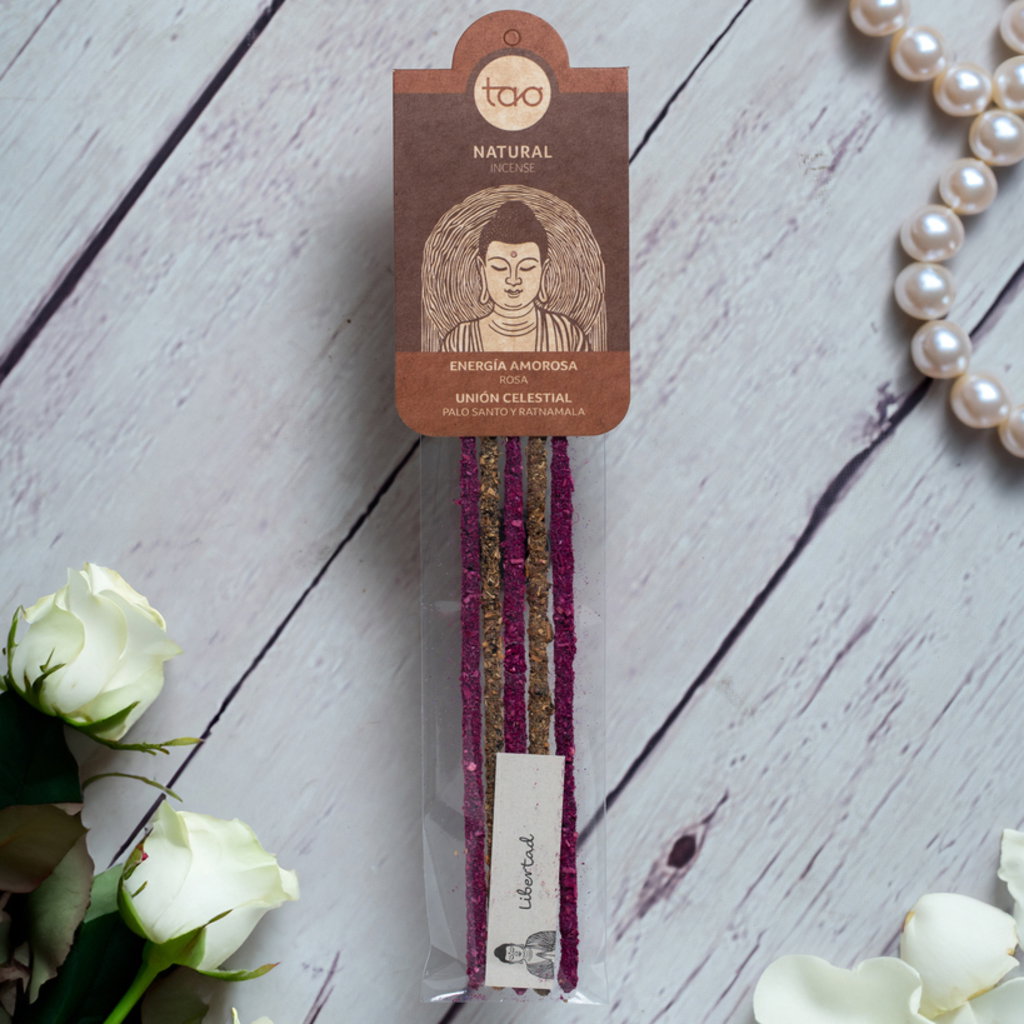 Energía amorosa + unión celestial: varillas de rosa y varillas de palo santo y ratnamala.